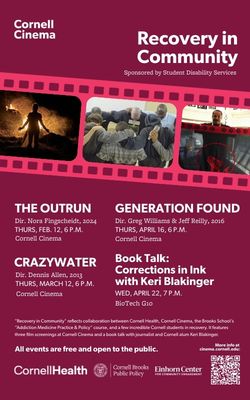 Student Disability Services (SDS), in collaboration with Cornell Cinema, is sponsoring Recovery in Community, a spring 2026 film series and book talk featuring powerful stories about substance use, recovery, and belonging.
