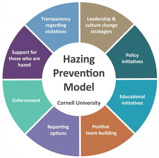 Cornell uses a "Hazing Prevention Model" to guide our public health approach to hazing prevention. View the Hazing Prevention Model fact sheet (pdf).
